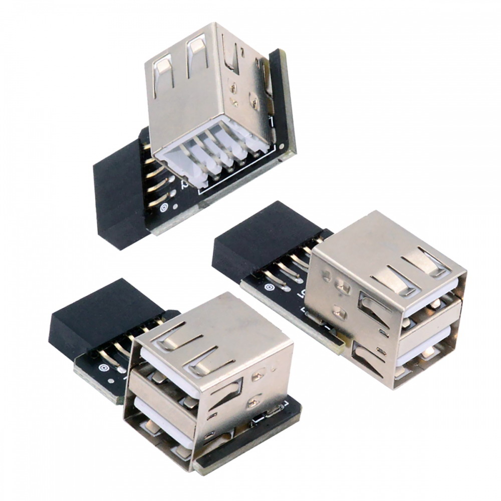 3pcs/set 9Pin/10Pin Motherboard Front Panel Header Female to Dual USB 2.0 Female Adapter Vertical Angled Type 90 Degree | | | Click:82013 |  |
