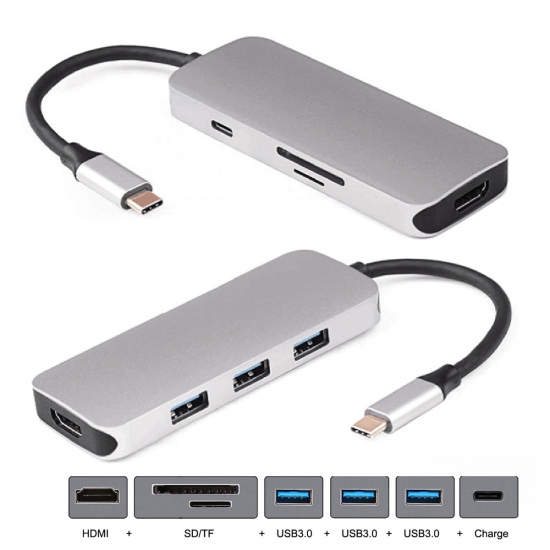 Dock USB-C to HDTV & 3 Ports HUB & TF SD Card Reader & Charger Multiport Adapter | | | Click:76845 |  |
